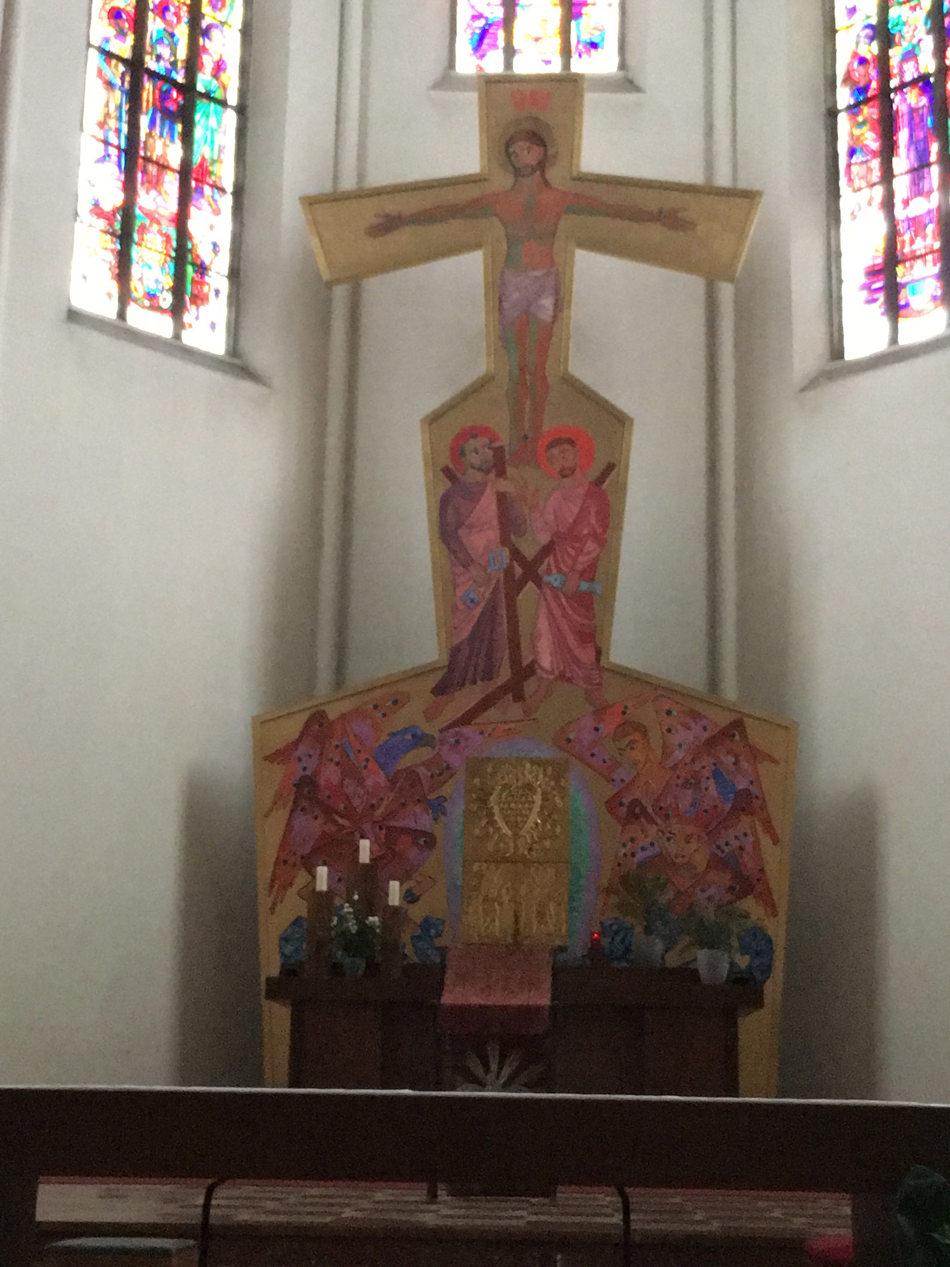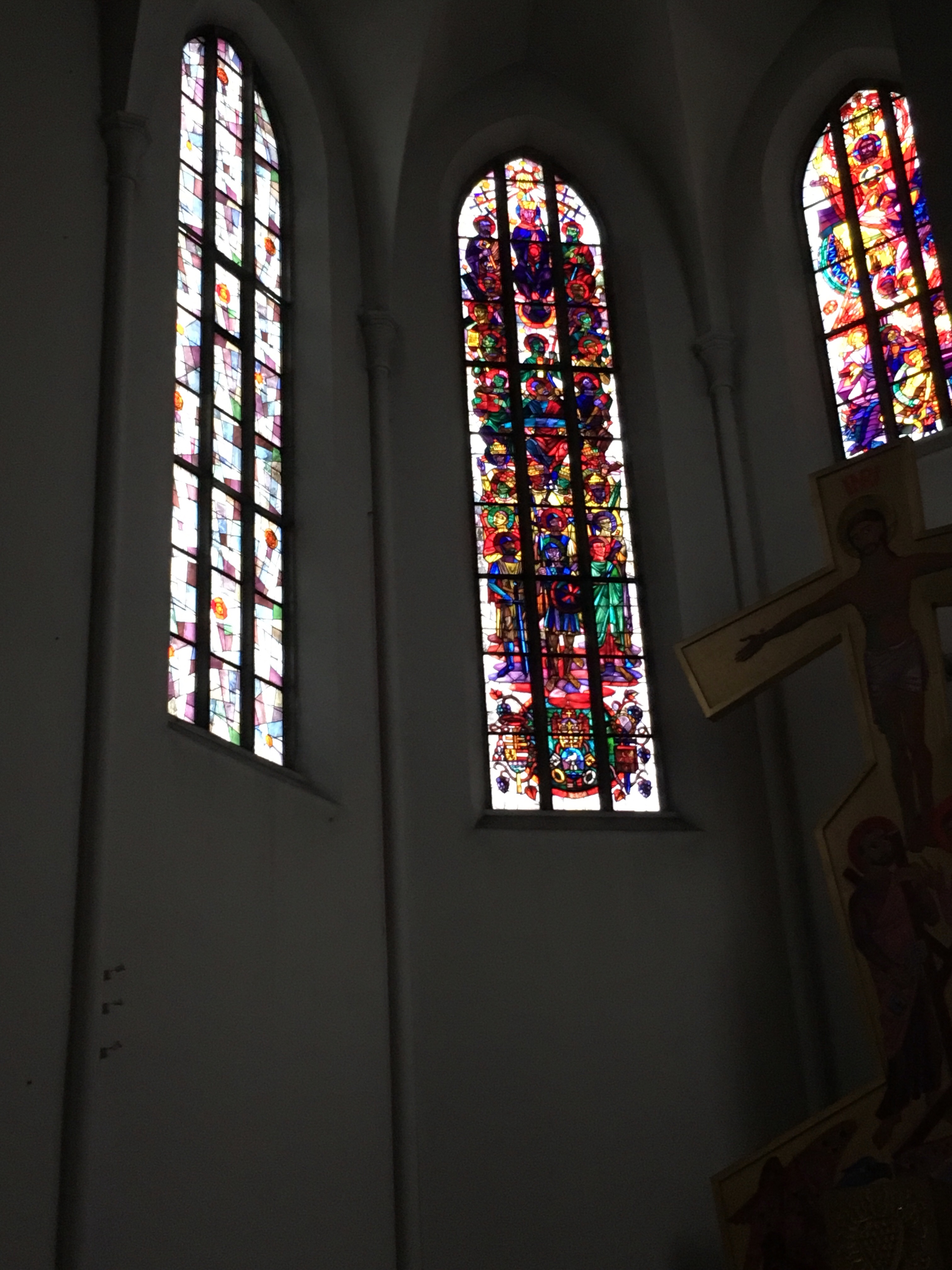 Maria is impressed with the artistic sacrifice that went into these places of worship. In Mozart’s time the Church was the center to folks’ lives so their viewpoint was, of necessity, theological. In reverence to Christ, some artisans carved powerful crucifixes. Others painted images of holy figures. Stained glass artists left their imprint by casting a colorful light on the devotees for generations to come. Musicians composed music that stirred the souls of countless disciples over the ages, guiding beyond the individual notes to God.