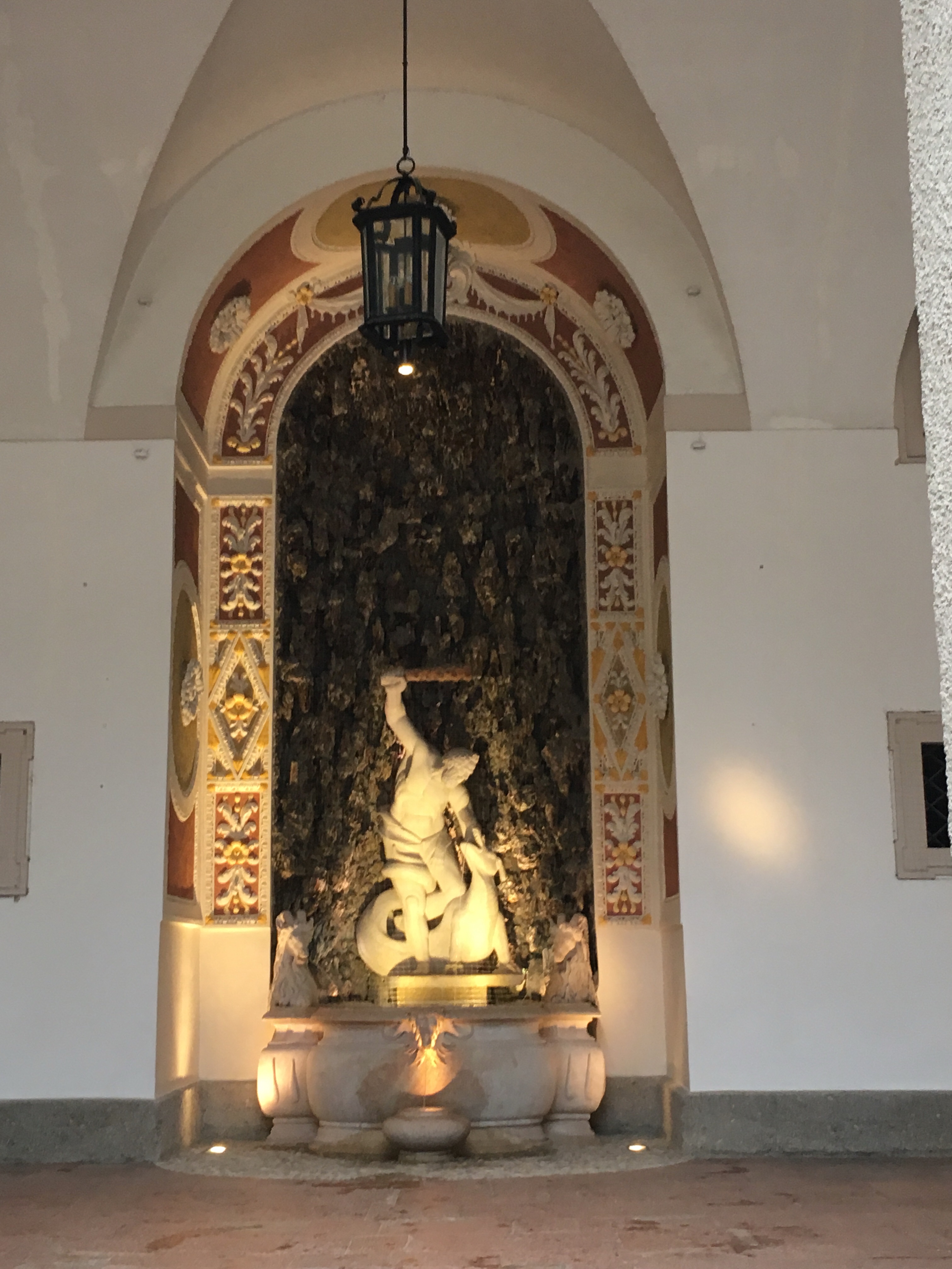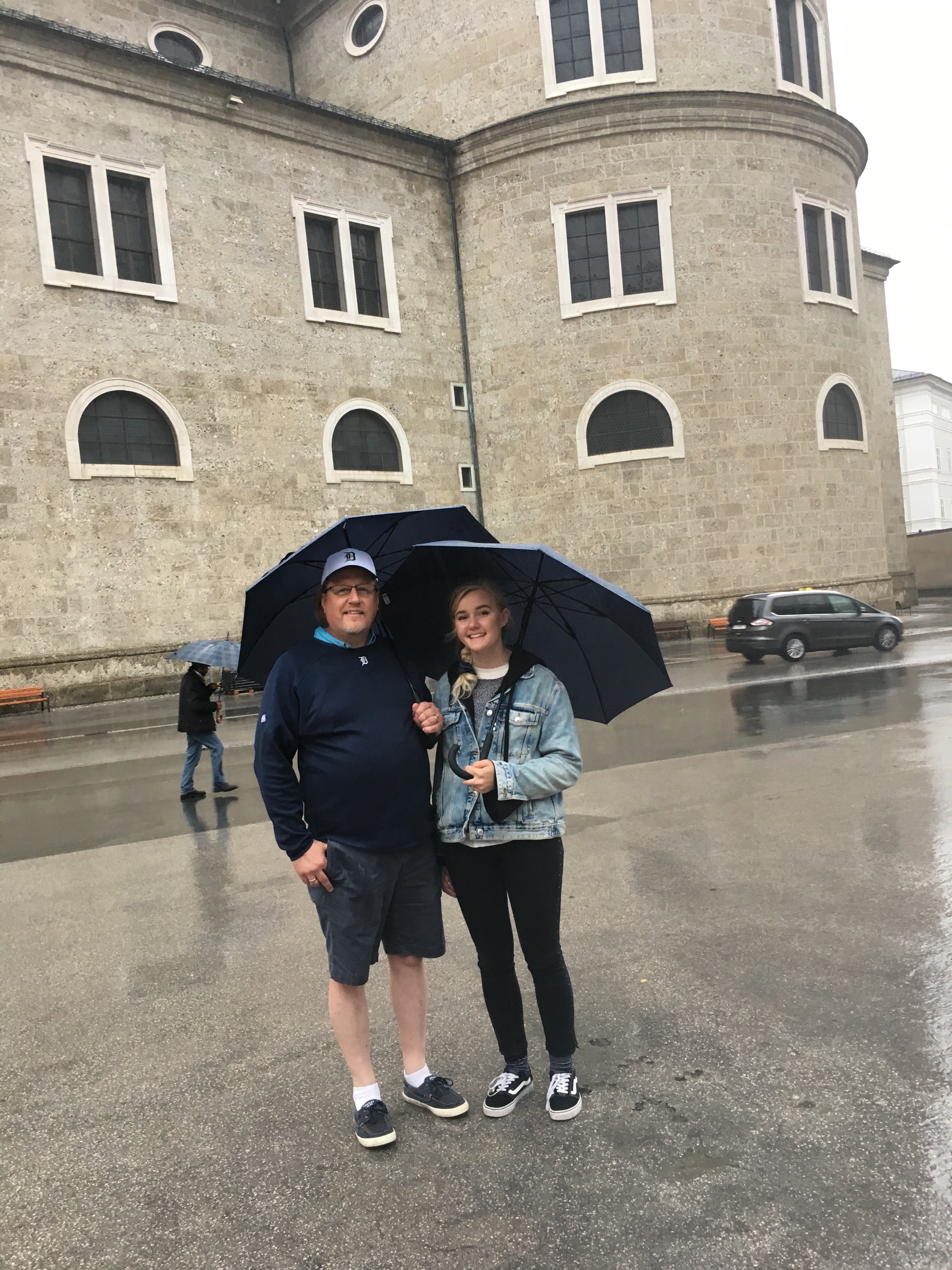 It rained all evening so we saw Salzburg by umbrella. Even the continual drizzle could not hide the tremendous beauty to Mozart’s hometown. Along the windy brick roads that snake through colorful buildings, we stumbled upon statues, fountains, carved pillars, and paintings. The talent of this renowned composer was obviously encouraged by an aesthetic hunger to Salzburg.