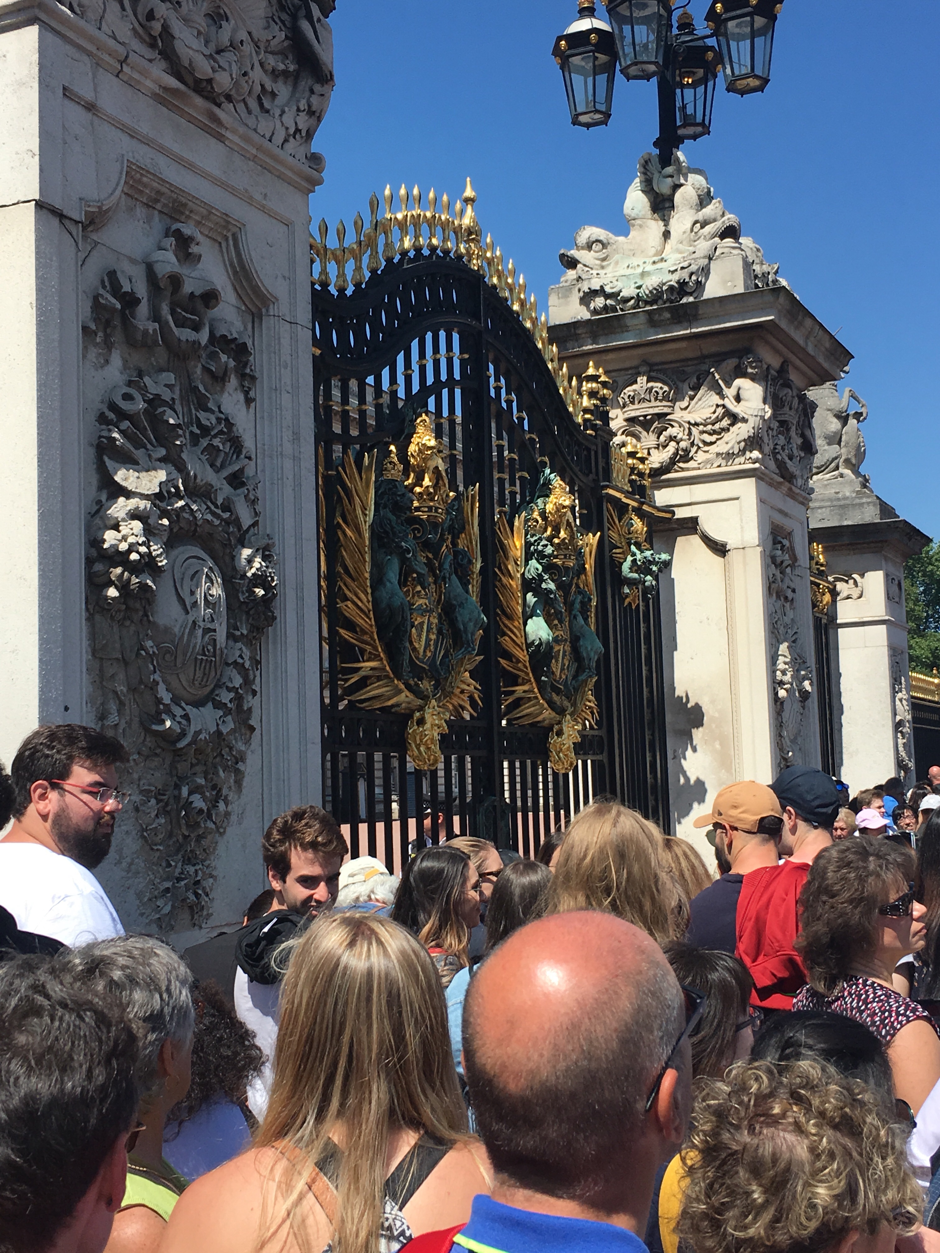 I’m thinking the Queen is on to us. First, she throws her annual Garden Party to honor the good deeds of regular citizens in London the very day we’re at the gates of Buckingham Palace. As we fiercely held our places in the crowd, just hoping to catch a glimpse of the changing of the guard, two soldiers on horses approached the gate. They swung open and a royal procession of horses, police officers and cars with honored guests drove through the mob, into the inner sanctum of the palace yard. The gates swung shut but elevated cell phones continued to capture every move of these poor folks on the other side of the bars. It was only later, by asking folks around us, that we learned the cause for the pomp and jubilation (I don’t get to use that word nearly enough and this is as good a time as any!): a royal Garden Party! Splendid!