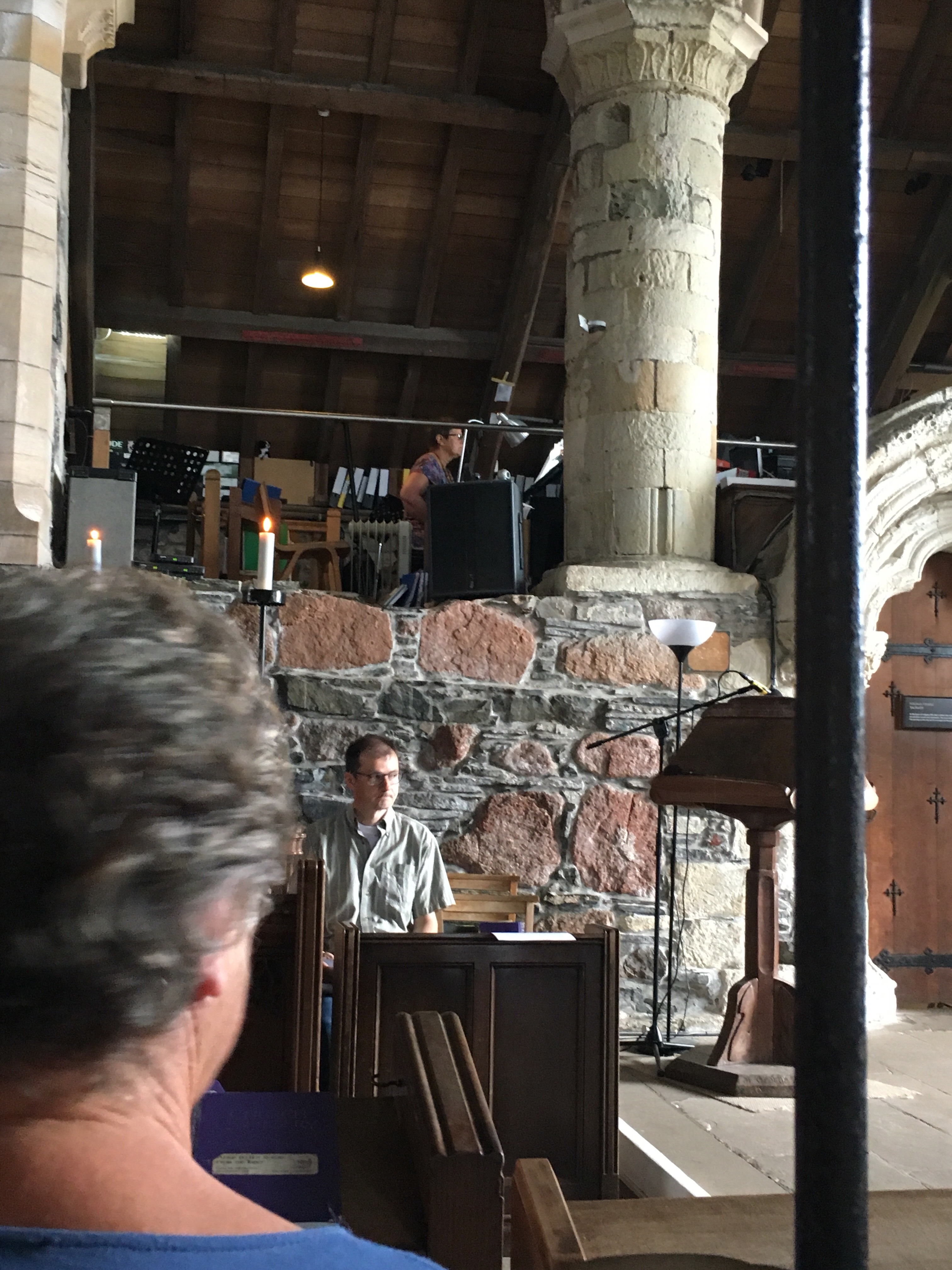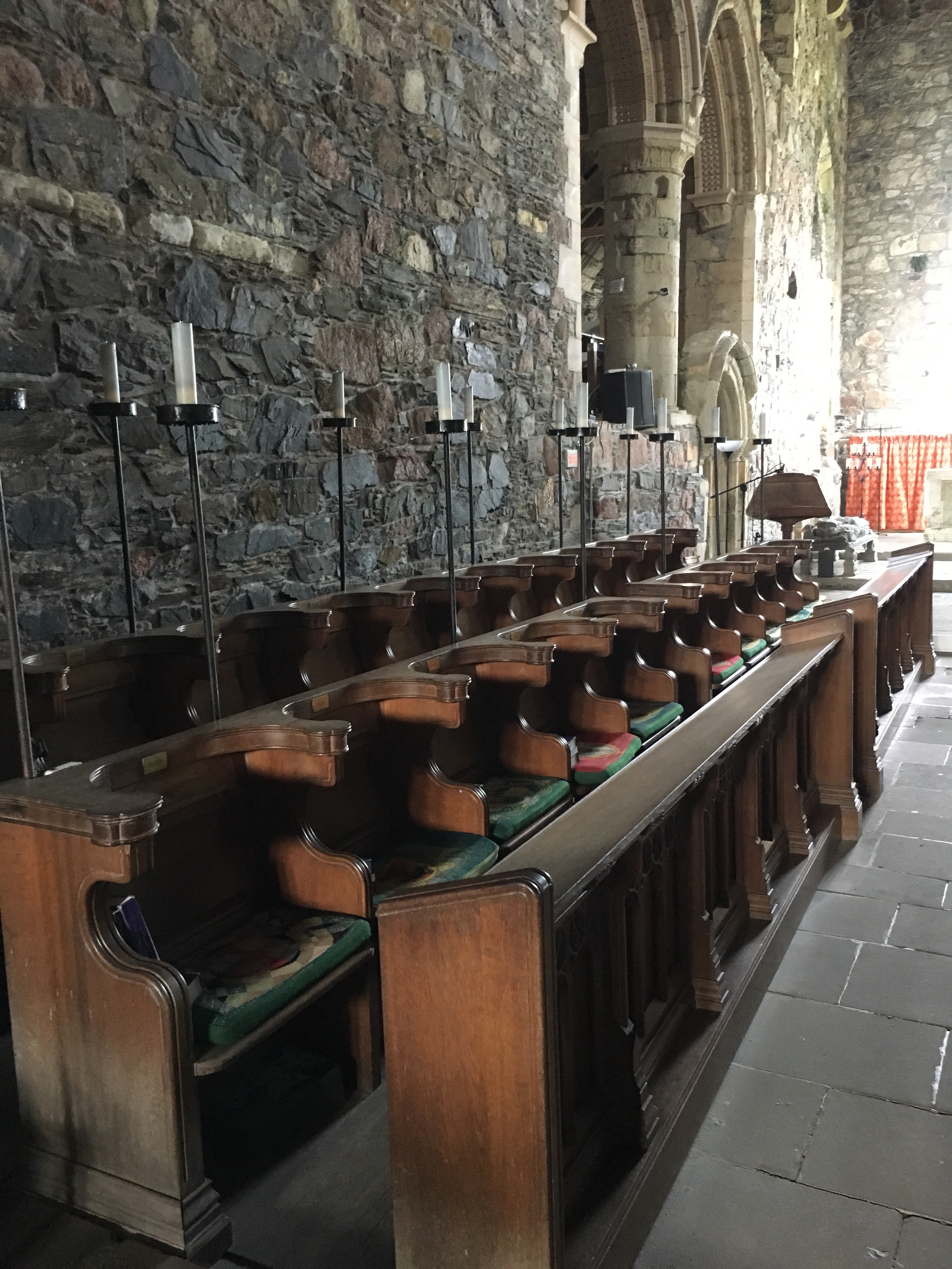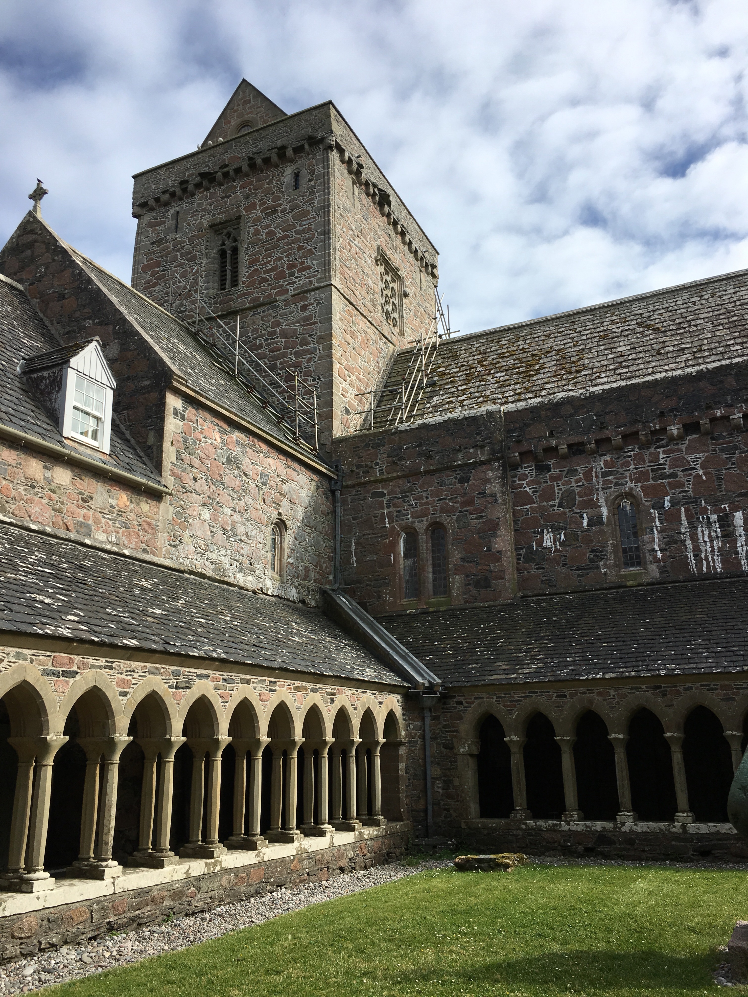 In the three days that I was on Iona I attended three worship services at the Abbey. We sat in the choir loft area in upright wooden benches with high backs. The people spoke of major renovations that happened in the 1400s! It is still a work in progress with layers of history that surrounded us as we joined our songs and prayers to those who preceded us. The pianist sits in a loft area, perched above an ancient doorframe. She played beautiful and contemporary music from this archaic stage. The power of the Spirit at the Abbey is palpable. There are graves, statues of holy people and Christian symbols in every part of the monastic compound. Each generation has worked to renew the space and add their own symbolism.