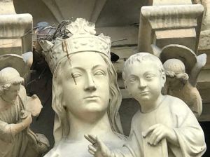 Mary with bird’s nest on head