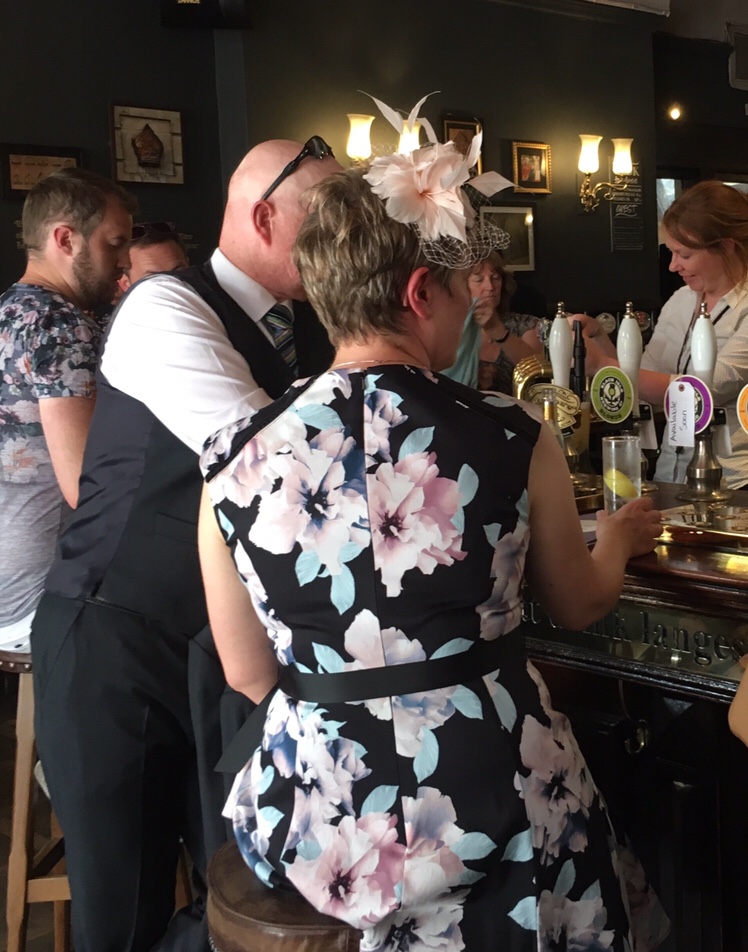 We did, by the way, get a lot of mileage out of these luxury items. Not only did we get some great photographs of four silly sisters claiming their roots in England. We wore them in several places which gave some light-hearted pleasure to our ancestral people. For the people who birthed Monty Python, it is no small credit to make them laugh! Both in London and Edinburgh, while we were there, the Queen held her annual tea. At these grand occasions that host thousands, she thanked ordinary citizens for their selfless contributions to the wellbeing of their communities. We were at the right place at the right time and had an opportunity to see a vast array of netting, feathers, twirlies and sparkles accenting hats the women wore to those ceremonies. In Edinburgh we were having a late lunch at a pub on the main drag of old-town Edinburgh when a throng of lovely ladies, accompanied by their handsome kilt-wearing princes, came in for a celebratory drink. We had front-row seats to a fantastic British fashion show!
