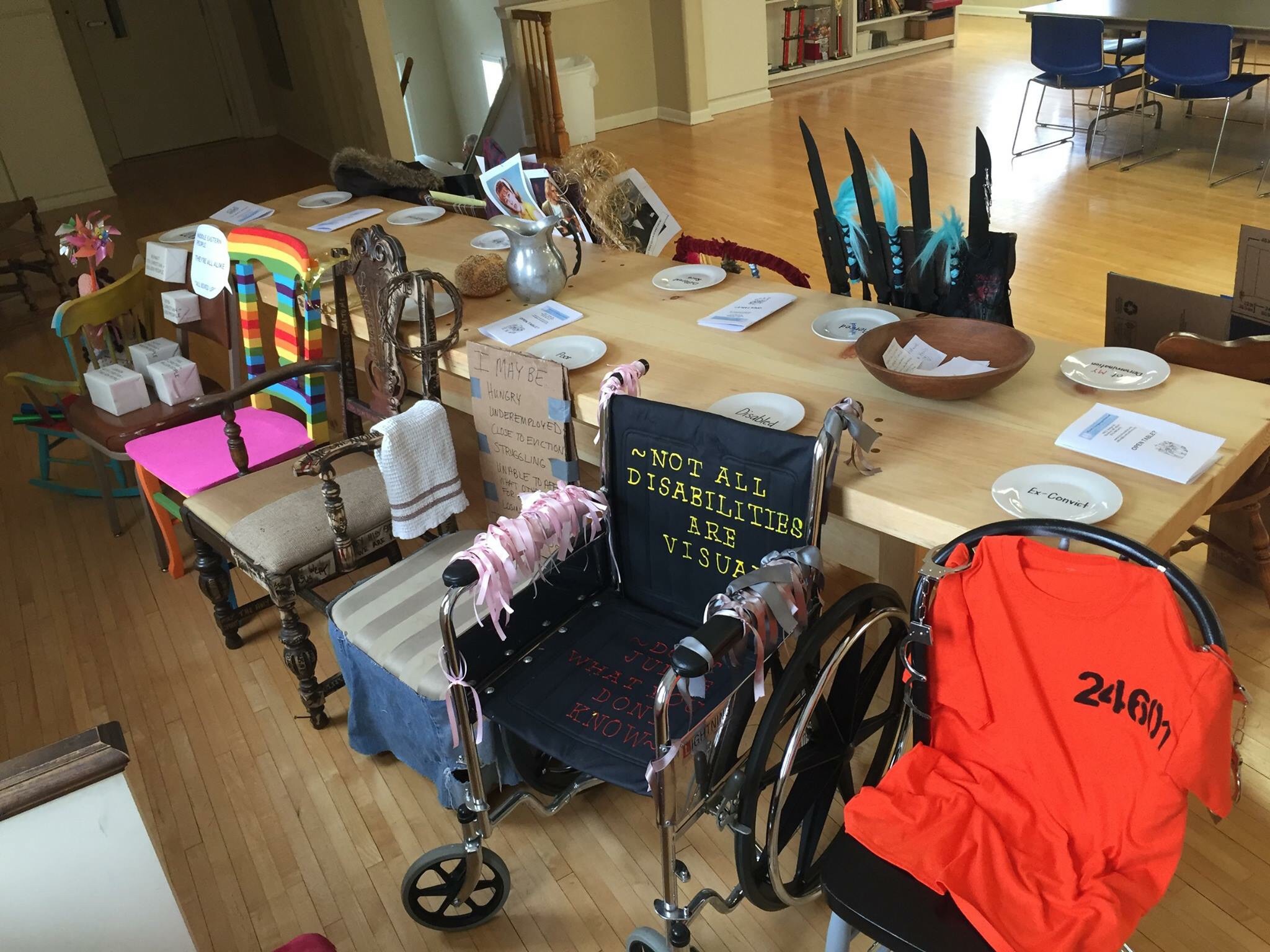 Our church probed the issue of offering a wider welcome through an unlikely art project. We envisioned setting a table with each chair representing one group or population that might be rejected in the setting of a church. Of course, those “outcasts” or peripheral people will change with each community. So we asked people in our small study groups to list the three categories of people they believed face the greatest discrimination in our North American Christian Church. From their suggestions we put together a Top 12 list and they became the guests at the table. In no particular order these were the esteemed twelve: Ex-convict; Not My Denomination; Pierced, Tattooed or Non-traditionally Adorned; Those with Disabilities; Poor; Not My Race; Mentally Ill; LGBTQ; Loud in Worship; Homeless; Divorced; and Middle Eastern. A 13th chair at the table was set for the host, Jesus.