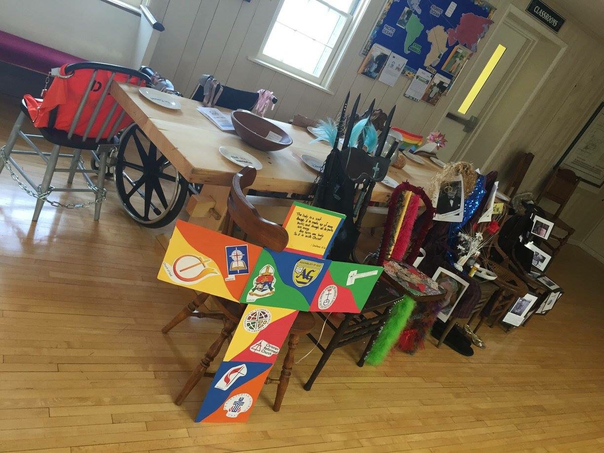 I loved hearing people’s reactions to this 13 by 7-foot artistic representation of the Last Supper. The artists’ statements were collated into a book and the stories they told were beautiful. Church members invited friends to visit the church during the week to look at our table. Quietly it gave testimony to the stories of those who are often overlooked, disliked or flat-out rejected in our sacred spaces. Prayers were left in the bowl that were heartfelt. On Easter morning the chairs were turned around to face the table, showing full inclusion in the Body of Christ. The resurrected Messiah loves and serves all, calling us to do the same.