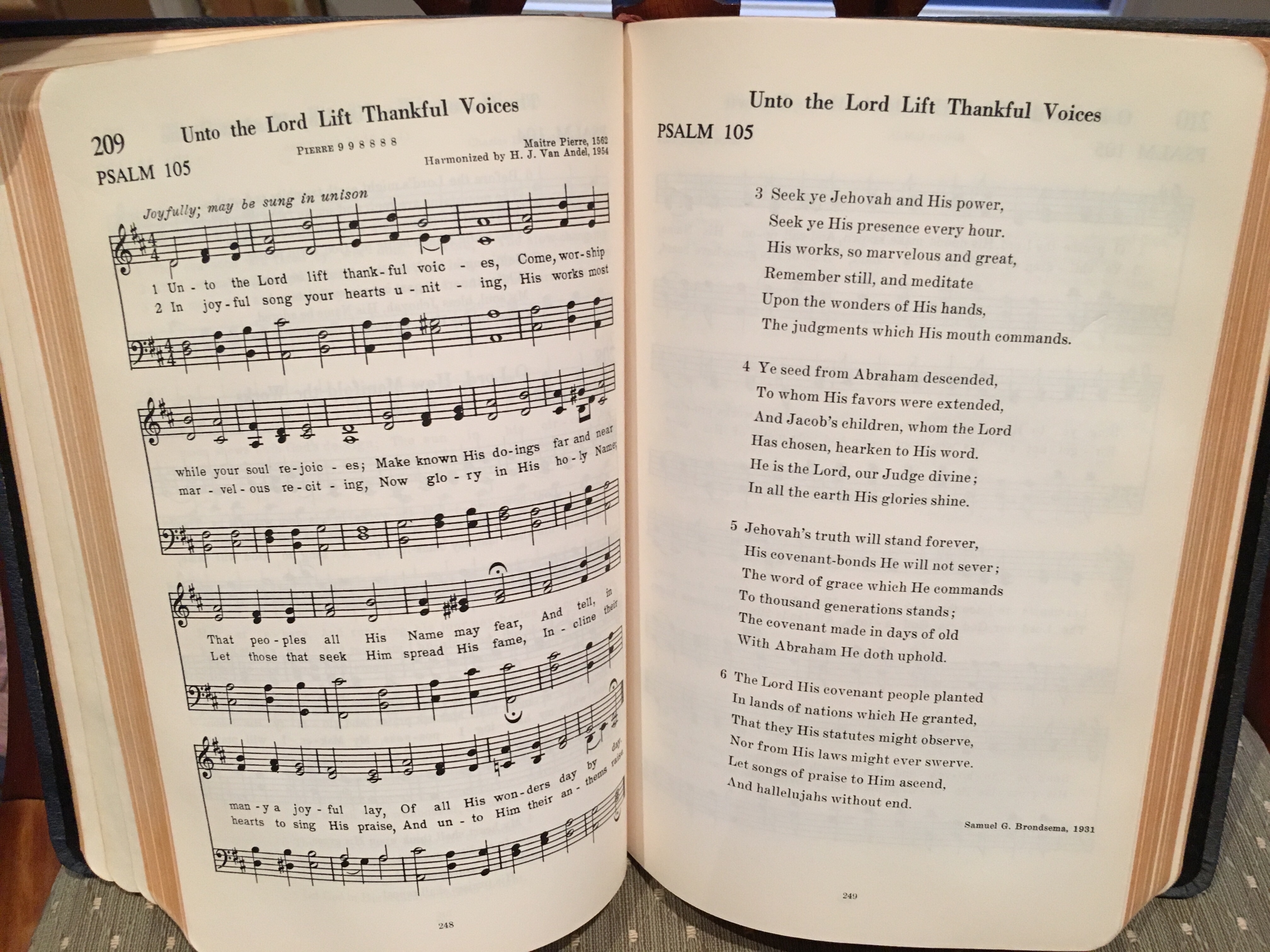 John fled his homeland of France, heading for Strasbourg, a free city amidst the religious turmoil. But, on the way, he was sidelined because of a battle. (Did you ever have to take a detour because of a battle?!?) He took refuge in Geneva, thinking he would stay a night or two. But his reputation preceded him and he was drafted into the movement vigorously afoot in Geneva to work against the Roman Catholic Church. A trip inconvenience apparently was a Divine Appointment! He made it to Strasbourg several years later for a three-year stint, where he married a widow with two children. But the last 20 years of his life and career were spent in Geneva where he pastored a congregation while producing wildly for the Reformation movement. He preached 150 sermons a year. He wrote commentaries on 31 different books of the Bible while maintaining a full lecture schedule. He worked to protect the institution of family by urging the legal establishment of a curfew. This would cut down on drinking and absentee husbands. He labored to the detriment of his health to foster unity within a very chaotic and divided Church. He loved music and believed that singing the scriptures was one of the best ways to settle those sacred texts within our hearts. He hired a gifted musician to set all 150 Psalms to music and this Psalter became a central part of Protestant worship. We still have a copy of Garrett’s grandfather’s psalter that he used as a minister in the Christian Reformed Church, which claims Calvin as their denominational forebear.