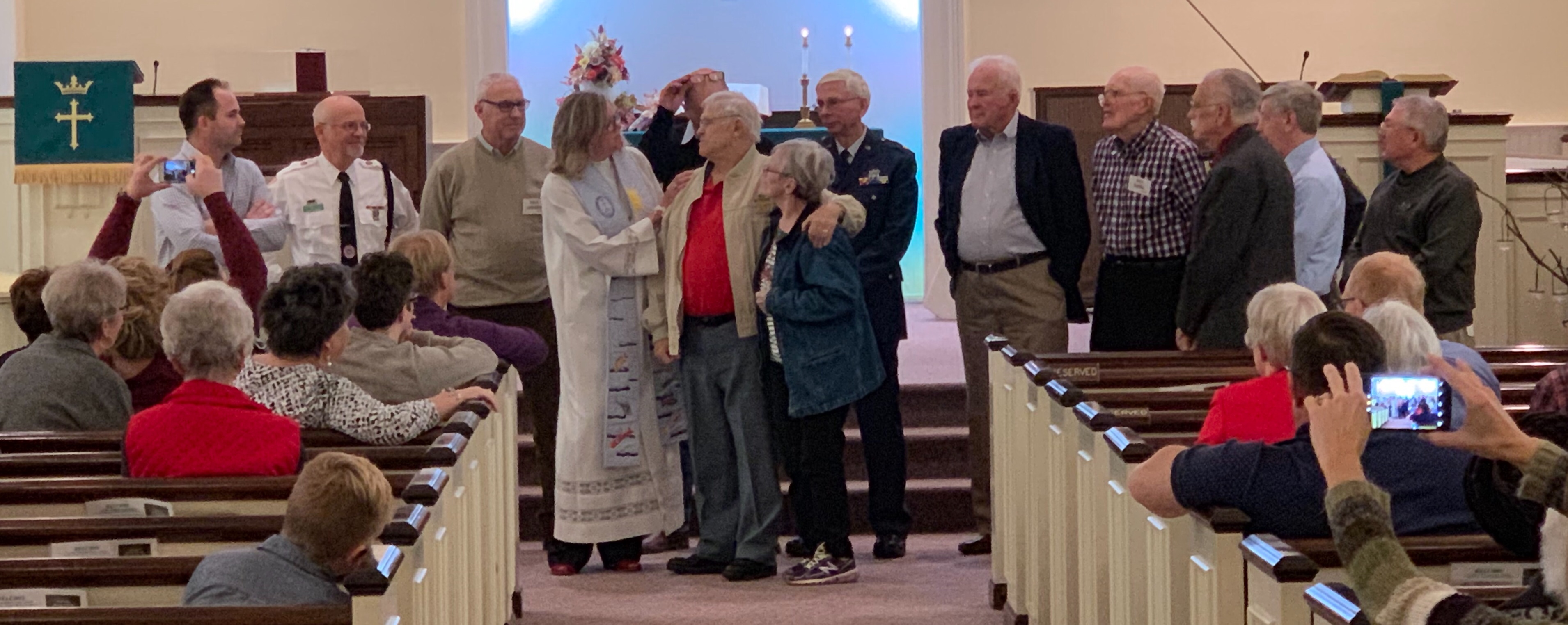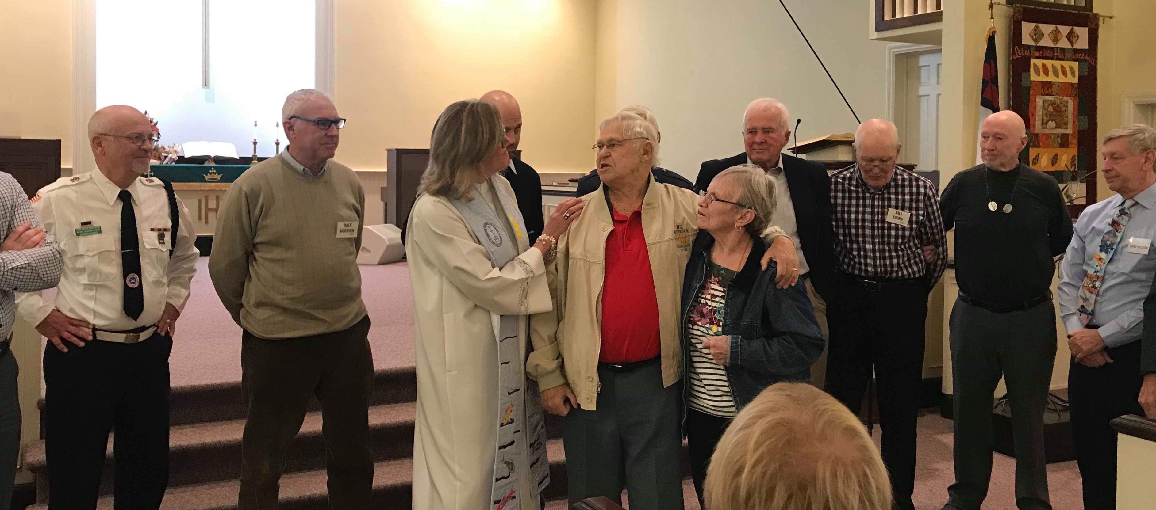 Each soldier was given a pocket Bible when they enlisted. He carried it with him and read it in the rare in-between moments. The 23rd Psalm brought comfort to him so he recited it often. We read it together in our worship, each person invited to either follow along in our pew Bible or recite it as they had learned it. The translation doesn’t matter much when we’re talking about God’s presence in the shadow of death. Bill was able to give us a glimpse into the darkness of war. But he also spoke of the light of faith that gave him hope when in the trenches. He remembered a time that all the troops were assembled for a prayer service before a battle surge. There were Jewish, Catholic and Protestant young men standing together to be blessed before battle. At that very moment the German attack planes flew overhead, threatening their security. It didn’t matter what God you prayed to at that moment, Bill assured us. They all dove for cover, intertwined for safety in protective spaces.