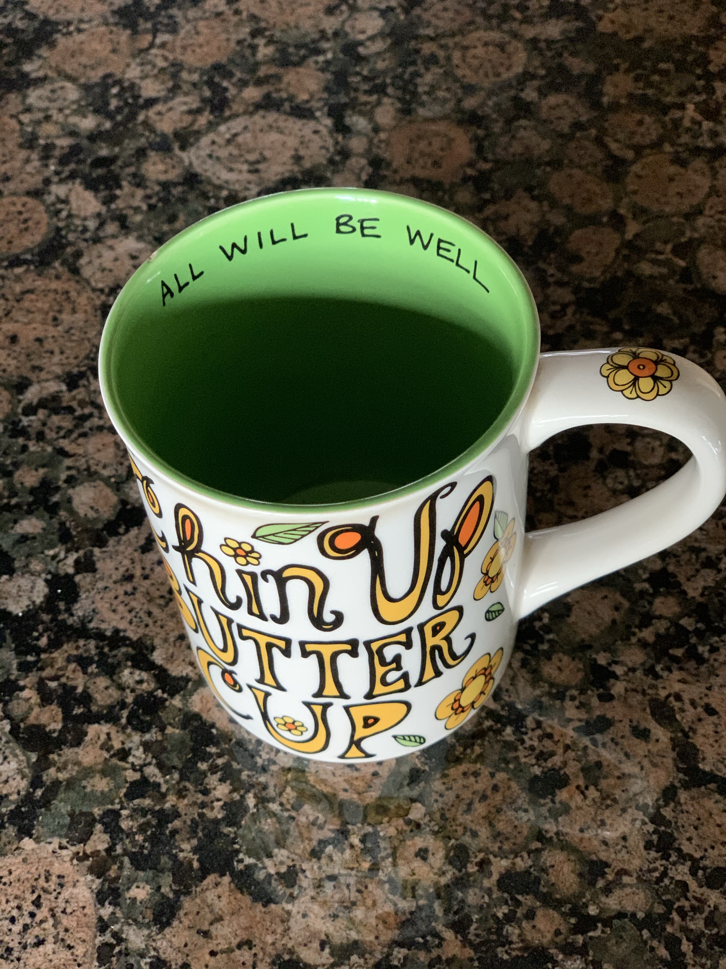 I enrolled in a Spiritual Direction course nearly two years ago. Each student was asked to choose one spiritual giant to study. We have been asked to share with each other what we have learned about our person and how their life has impacted our own. I chose Julian of Norwich. Honestly, it seems as if she chose me. Norwich, where Julian spent her life, is just 20 minutes south of the small town where I lived in England from ages 1-4. I feel like I know her world as part of my earliest childhood development. My daughter, Maria, gave me a coffee mug several years ago that has an upbeat line printed along the inside upper rim of the cup: All will be well. The mug has yellow flowers painted on the outside of it. This mug cheers me up, especially as I sip my morning coffee in the dark of winter. I learned, as I got to know Julian, that this is her line. She is remembered for her affirmation: All will be well and all will be well and all manner of things will be well. What an optimist I chose!