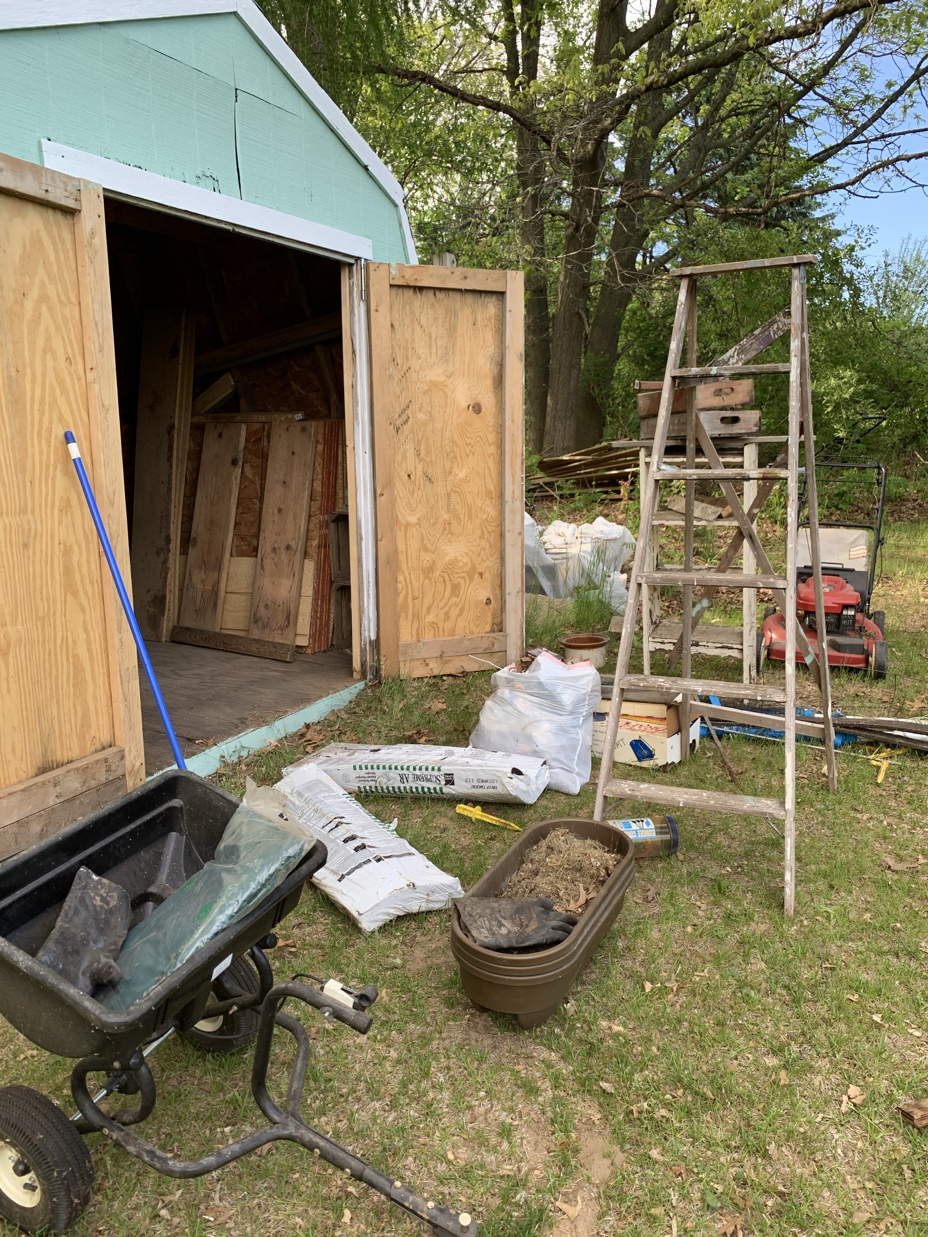 I don’t remember why I went into our garden shed that day. A rider mower fills the bulk of the space while various and sundry outdoor items have been dumped there over the years…like, 22 years! So I opened the shed door to accomplish some outdoor task and was drawn into the chaos. When I see a mess my mind spirals out of control, determining what needs to be done and in what order. It’s really a curse! It is very difficult for me to concentrate when my surroundings are in disarray. Sometimes that leads to immediate cleaning action. However, if it’s an area that really isn’t under my control, I walk away. On this particular day in May, wearing flip flops and running shorts, my organizational self was drawn into this neglected part of our real estate.