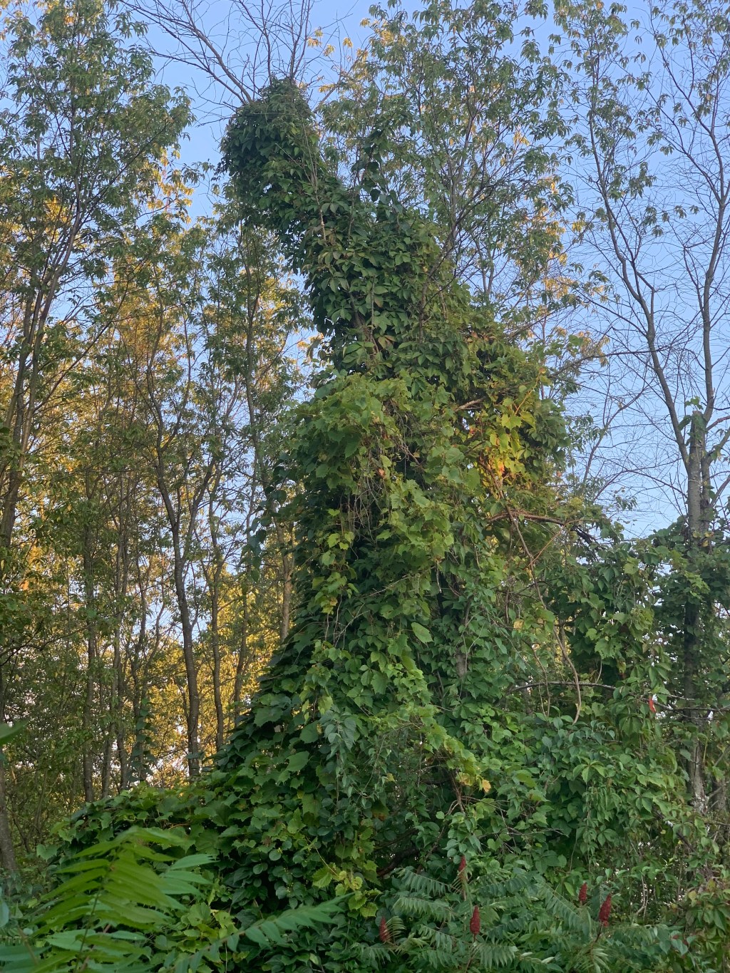 I also saw that the same vine had covered a Rose of Sharon bush that didn’t deserve to struggle to bloom in the grip of such an aggressive foe. So I started pulling on vines to find the root. As I jubilantly cut those sturdy stems, I had a pang of guilt. Didn’t Jesus say He was “the true vine”? Should I view this vine positively rather than with murderous zeal? Am I doubly guilty because I am delighting in the notion of doing a follow-up attack with a spray bottle of Round-Up? As I victoriously hauled one tarp-ful of hacked vines after another into the nearby woods, I wondered what could possibly be good about vines!
