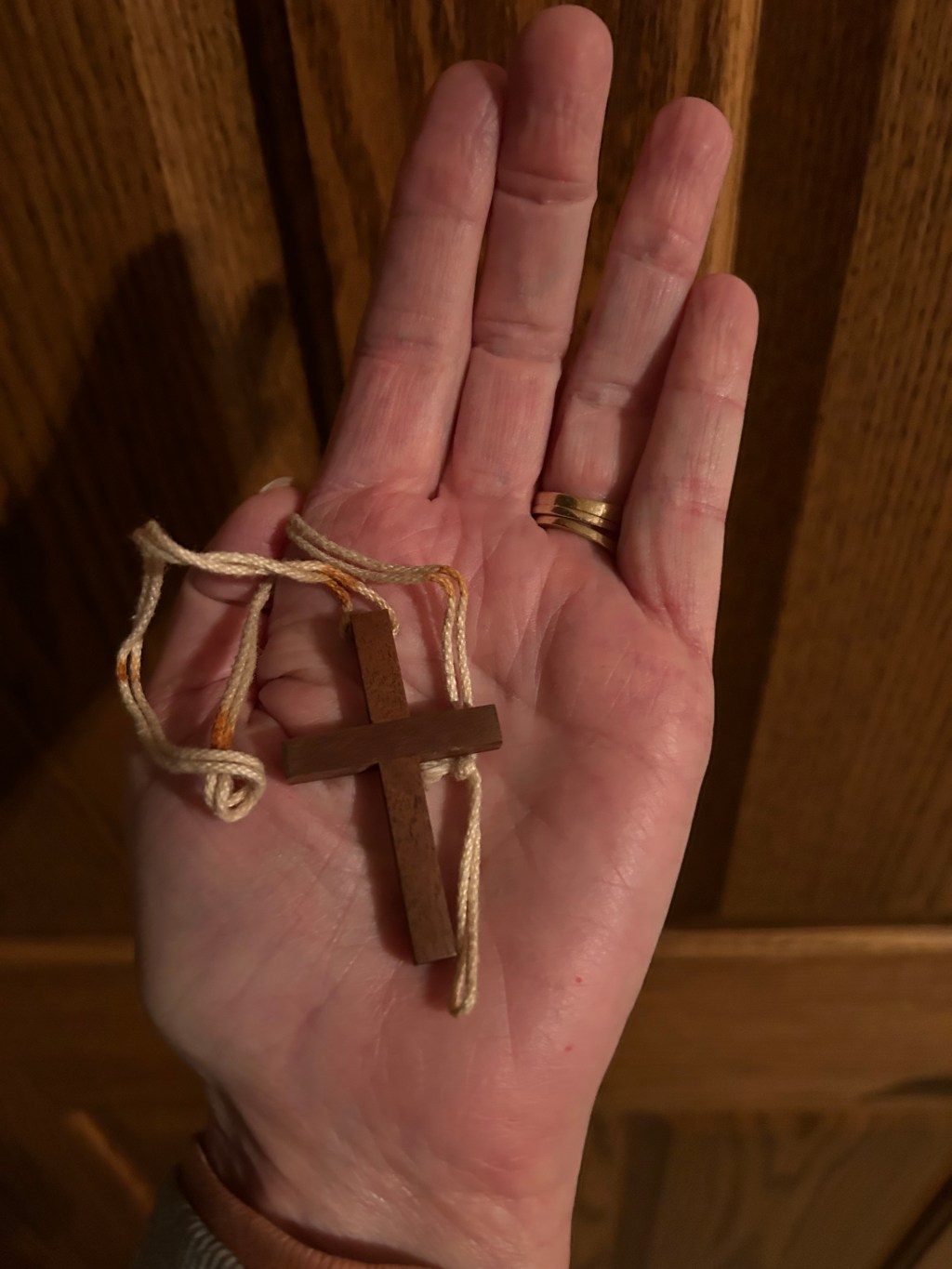 Each year, as our teenagers raised money and awareness about their summer mission trip, the woodworker concentrated in the peaceful solitude of his downstairs workshop on making cross necklaces. He cut two small “beams” out of wood, glued them together to produce a cross no higher than two inches. He stained and varnished each one then threaded a simple piece of white string through the top. On the Sunday we commissioned the youth for their trip, we invited a parent or other significant person to stand with them and place the cross necklace over their head and around their neck. They wore them from that point forward: on the long car ride or in the plane, if the trip was overseas. The simple necklace hung down as they hammered nails, weed-whacked overgrown yards, dug out a compromised septic system (yes, we even did that one year…) or sat on the front porch talking to the owner of the home we were repairing. Even more than the custom T-shirt designed for the group, this cross necklace became our group “branding.”