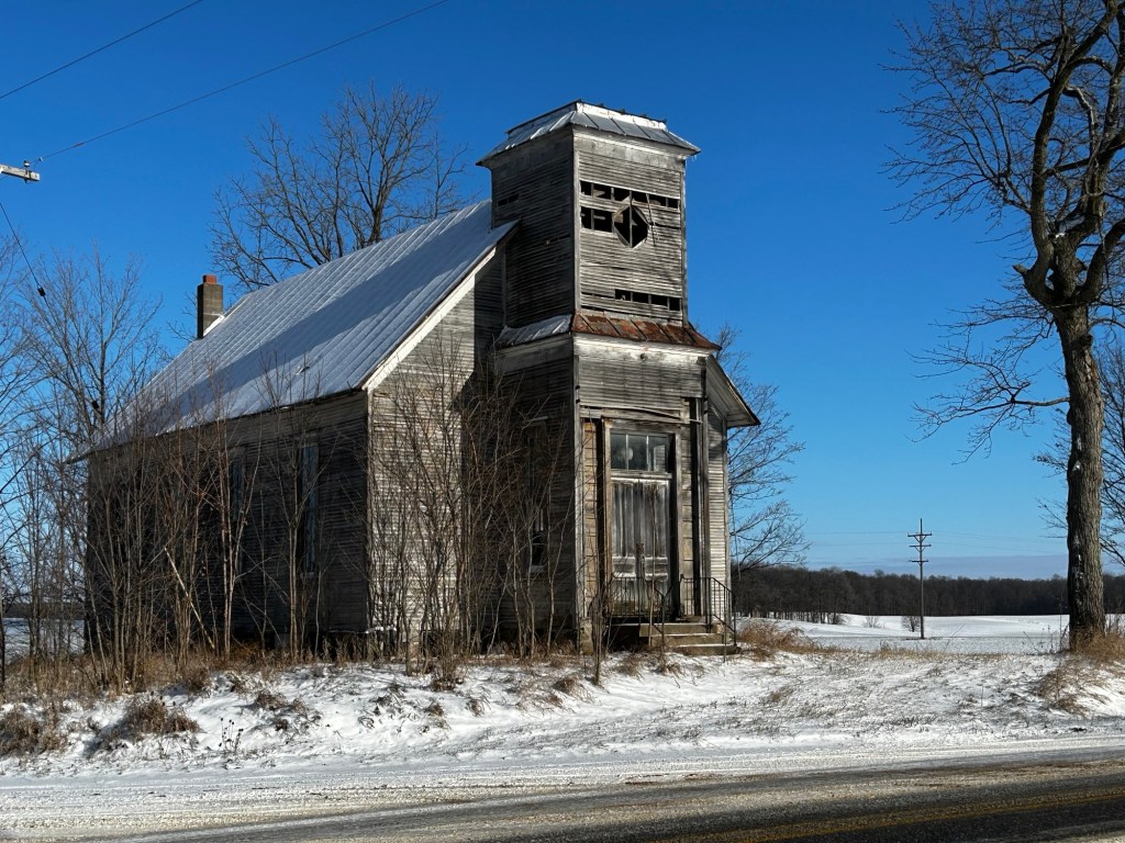 This one church in Castleton Township won over my heart more than the many others I admired. She stands alone, surrounded by nothing but fields. She offered a haven from the storms of daily life to generations of farm families who walked or rode in wagons to find weekly solace in her sanctuary. The design details, carefully imagined and constructed, continue to captivate, even if weathered. A white globe light can be seen hanging in the entryway, no longer powered to illuminate the way.